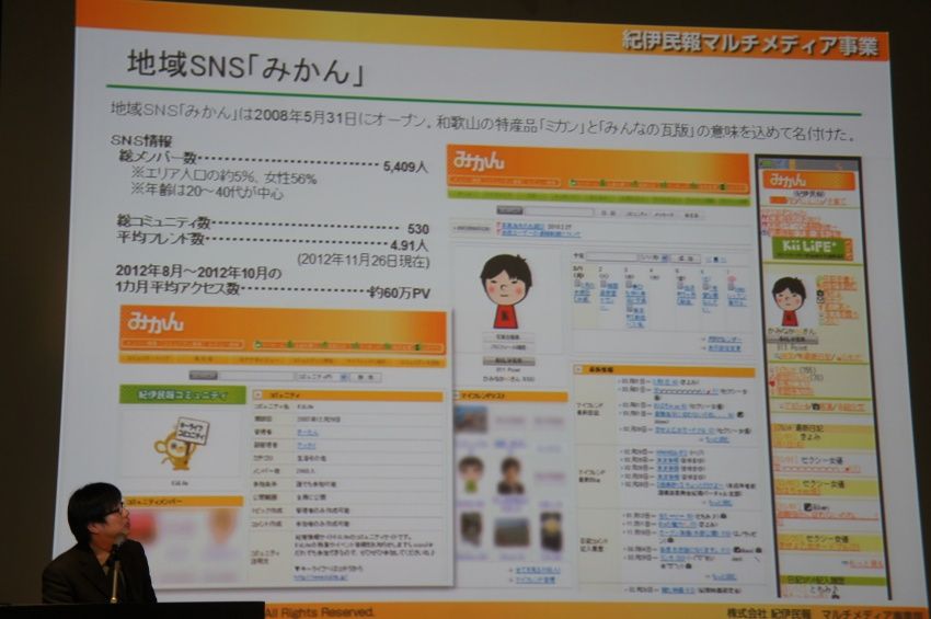 和歌山県南部の田辺市を中心エリアとする地方紙・紀伊民報が運営している、ホームページ更新システム「eメイド」、地域生活情報「KiiLife」、地域SNS「みかん」などについて。