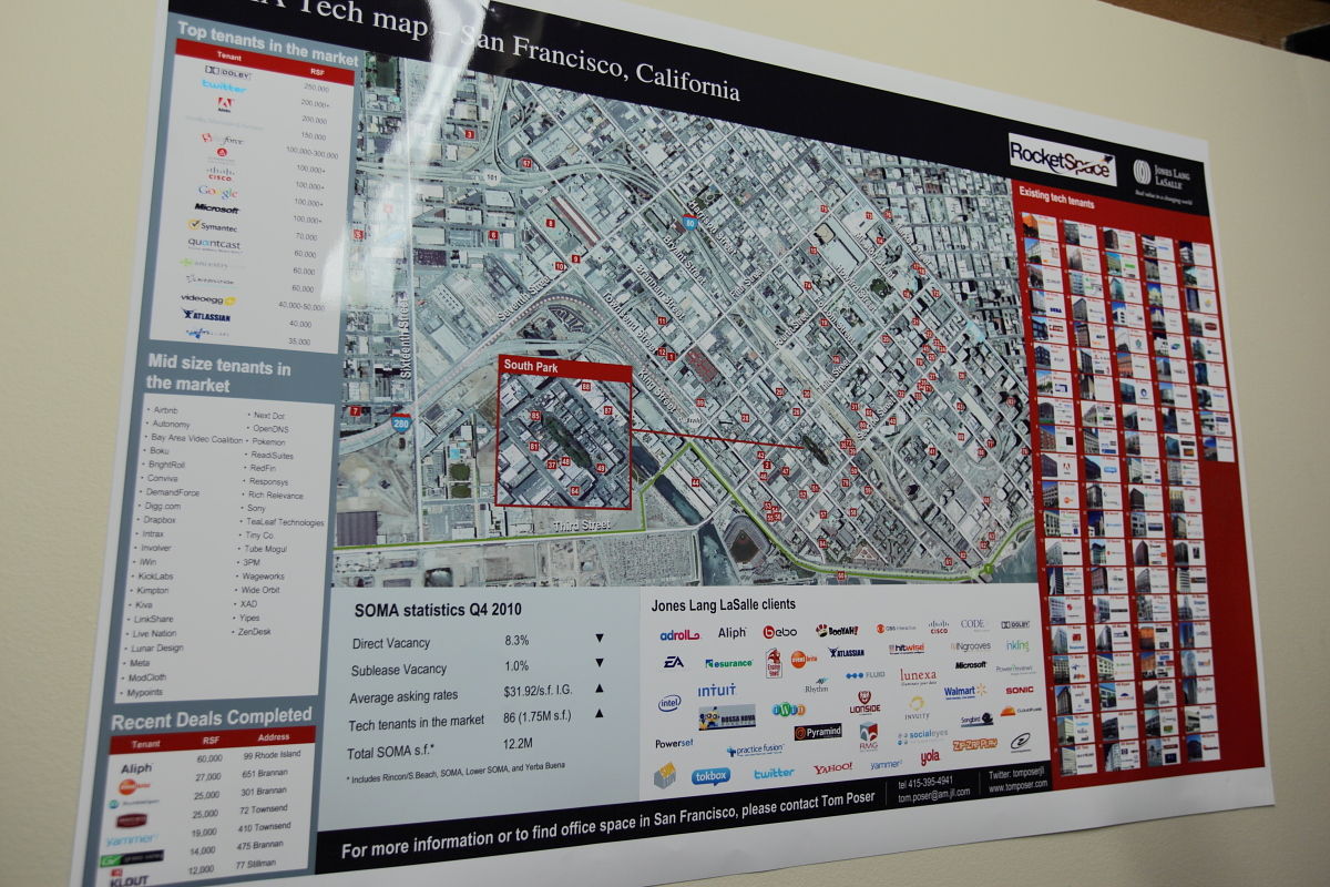 10年前までは倉庫街で夜になると治安が悪いと言われていたSouth of Marketと呼ばれる地域はものすごい勢いで再開発が行われている。訪れたオフィスの壁には、同地域に存在するテクノロジー企業の分布図が貼られていた。シリコンバレー在住のある日本人は、「シリコンバレーの中心は完全にサンフランシスコに移りました。それなのに今だに大手日本企業は南のほうに事務所を構えようとする。大企業は動きはどうも一周遅れになりがちですね」と語っていた。