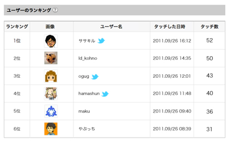 常連ユーザーのランキングが表示される。